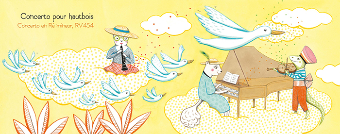 El trazo sutil y fresco de Delphine Renon, la ilustradora del libro y de la colección de música clásica, combina perfectamente con la delicadeza y elegancia del proyecto.